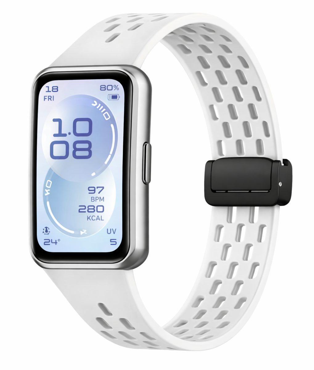eses Silikonový dírkovaný řemínek s magnetickou přezkou pro Huawei Band 11 a Huawei Band 11 Pro - Bílý