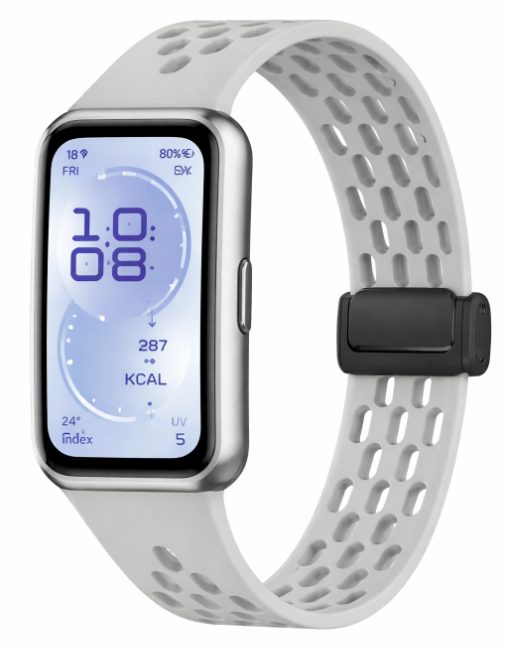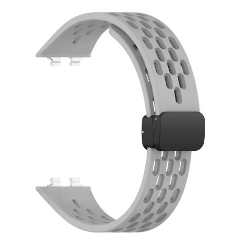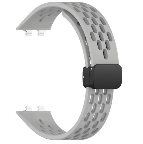 eses Silikonový dírkovaný řemínek s magnetickou přezkou pro Huawei Band 11 a Huawei Band 11 Pro - Světle šedý