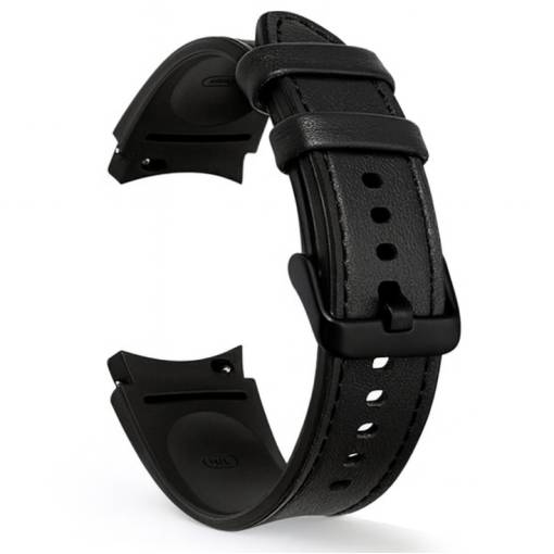 eses Sportovní kožený řemínek pro Samsung Galaxy Watch 4, 5, 6, 7 - Černý, 20 mm