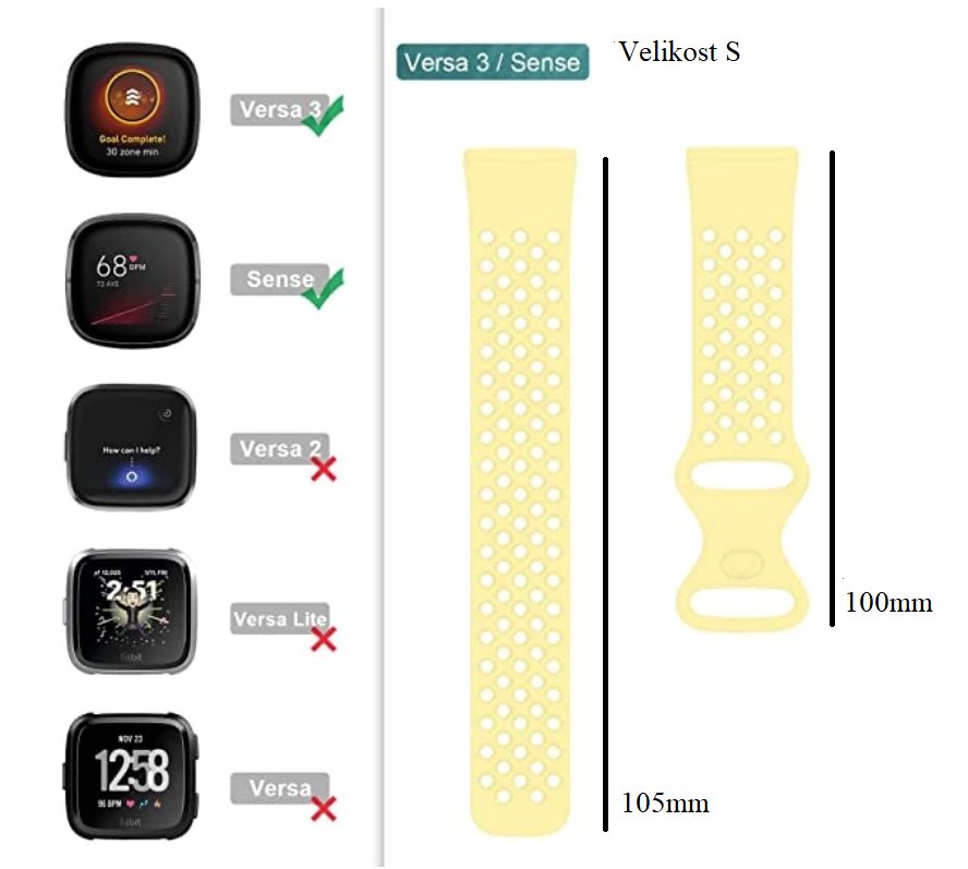 eses Silikonový řemínek dírkovaný pro Fitbit Versa 3 a 4, Sense 1 a 2 - Velikost S, černý