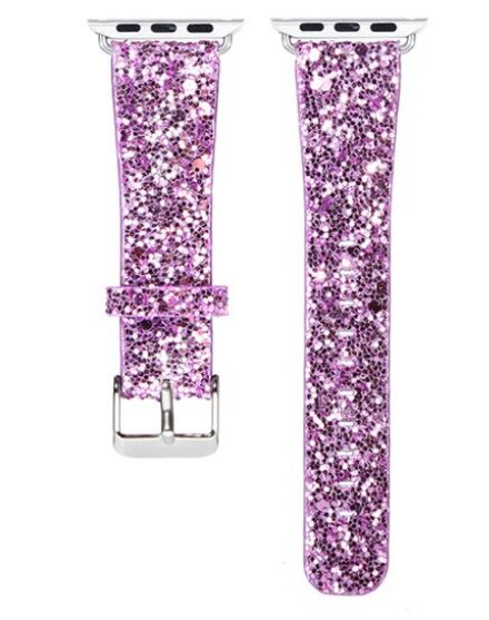 eses Kožený flitrový řemínek pro Apple Watch - Růžový 42mm, 44mm, 45mm, 49mm