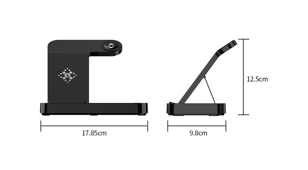 Stojánek je vybaven třemi indukčními plochami pro bezdrátové nabíjení.