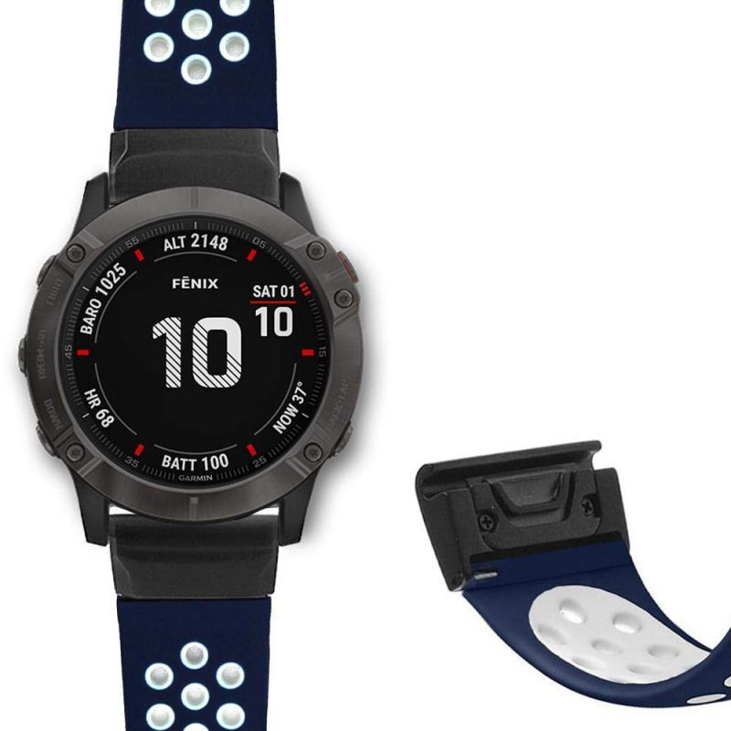 eses Silikonový dírkovaný řemínek pro Garmin - Černo zelený, QuickFit 22 mm