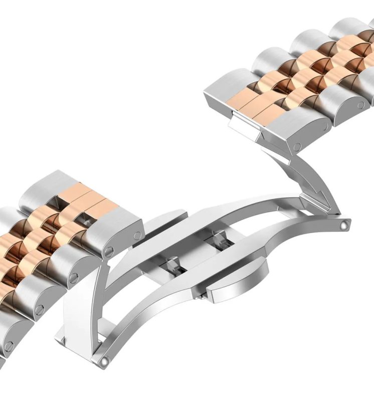 eses Kovový řemínek pro Xiaomi Redmi Watch 4, 5, 6 a Smart Band 8 Pro a 9 Pro - Stříbrný s růžovo zlatým pruhem