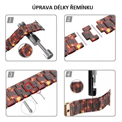 Odstraněním jednotlivých dílků lze upravit délku řemínku.