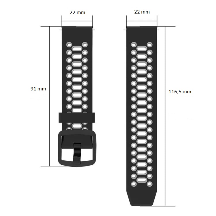 eses Silikonový perforovaný řemínek - Černo šedý, 22 mm