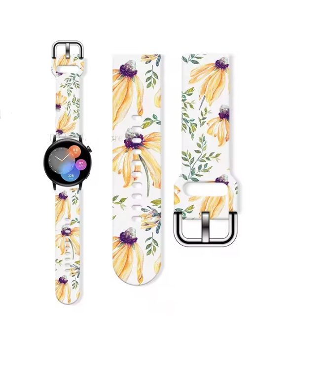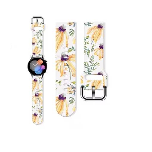 eses Silikonový květinový řemínek - Žlutý, fialový 22 mm