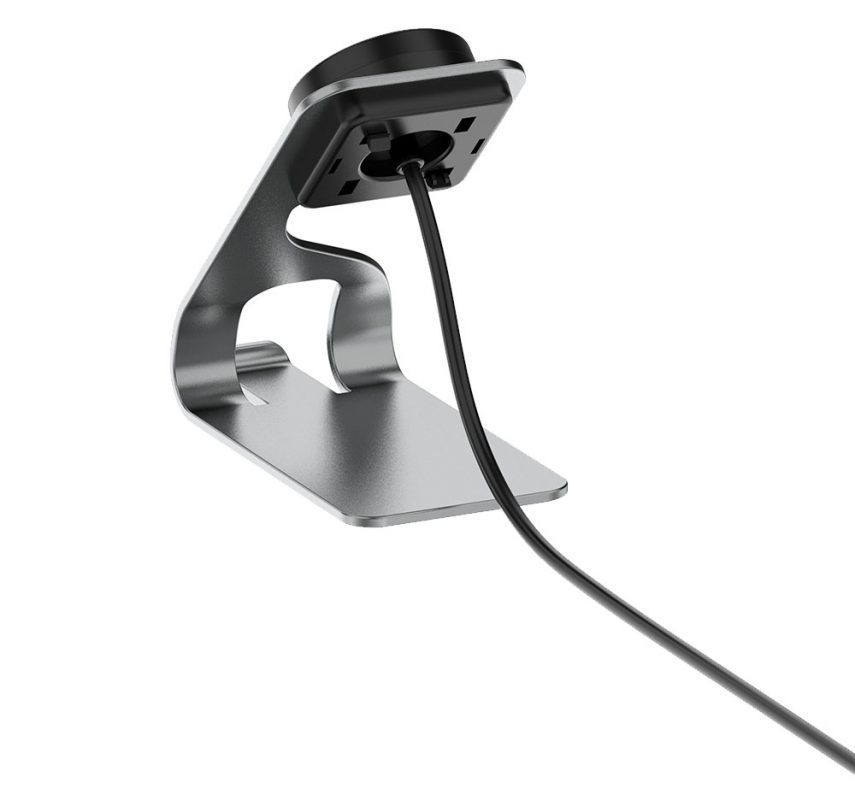 Hliníkový nabíjecí stojánek pro chytré hodinky Honor v šedé barvě.
