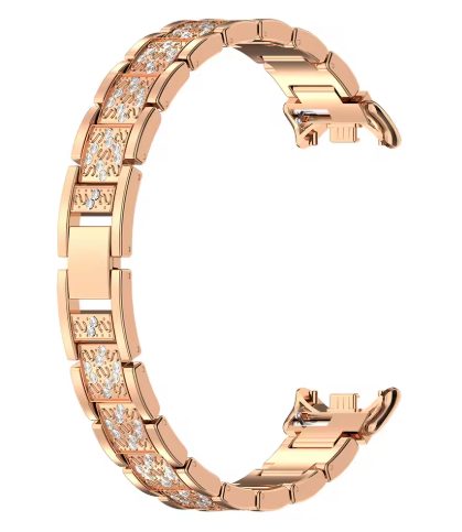 eses Kovový řemínek s kamínky pro Xiaomi Smart Band 8, 9 a 10 - Růžovo zlatý