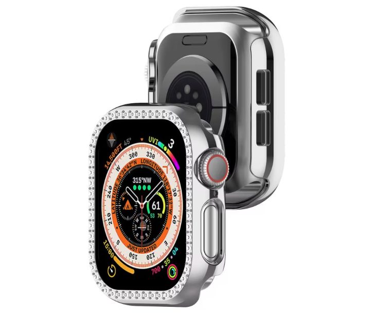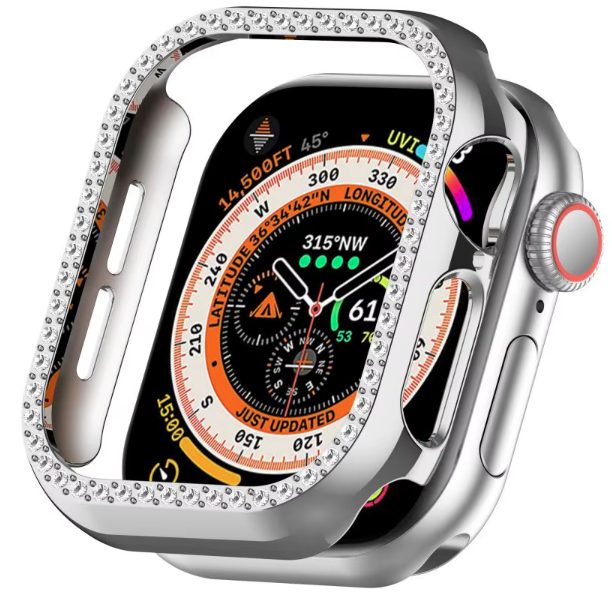 Ochranný rámeček s kamínky pro Apple Watch 10, 46 mm - Stříbrný