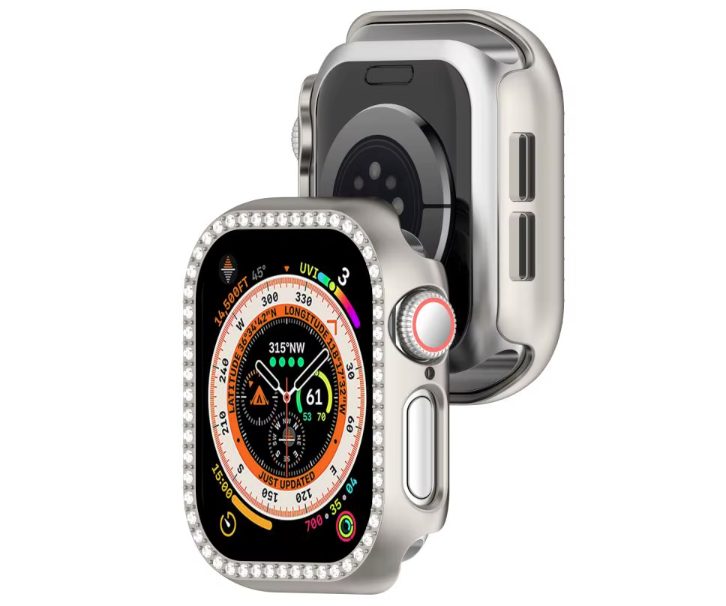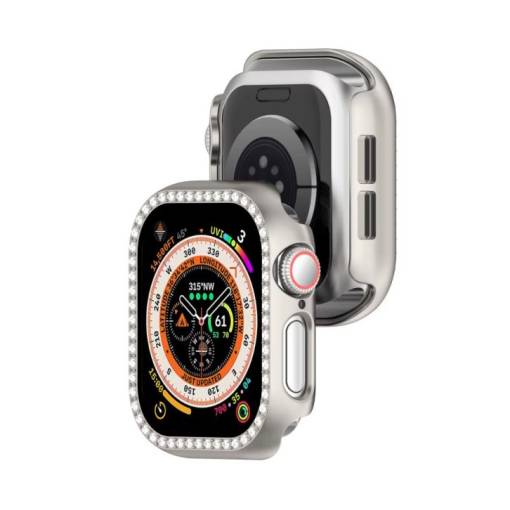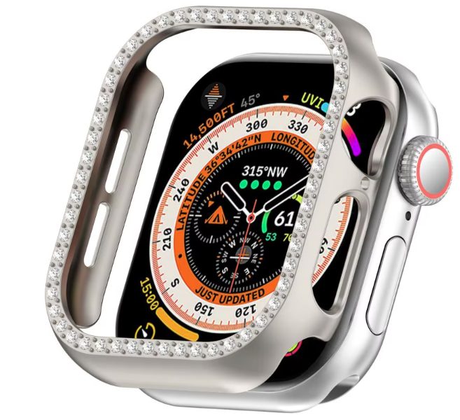Ochranný rámeček s kamínky pro Apple Watch 10, 42 mm - Stříbrný, matný