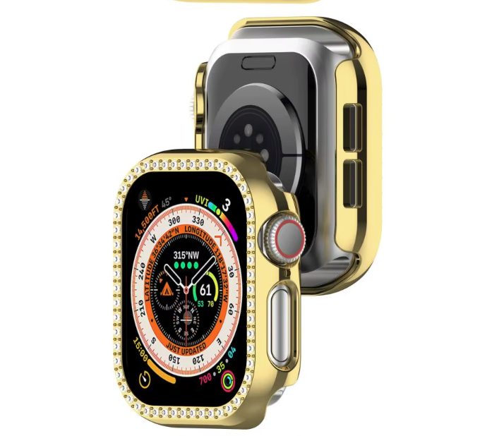 Ochranný rámeček s kamínky pro Apple Watch 10, 42 mm - Zlatý