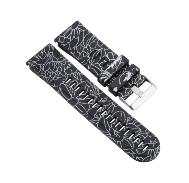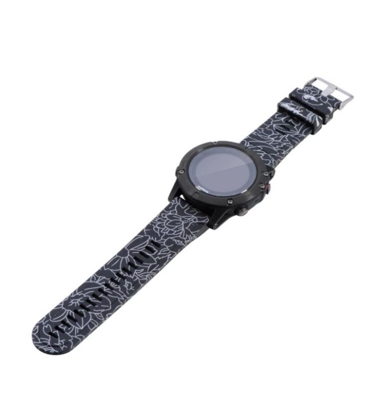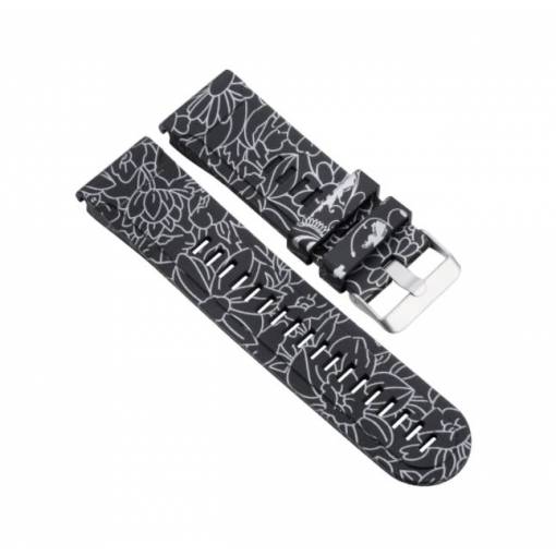 eses Silikonový řemínek pro Garmin - Vzorovaný s bílými květy, QuickFit 26 mm