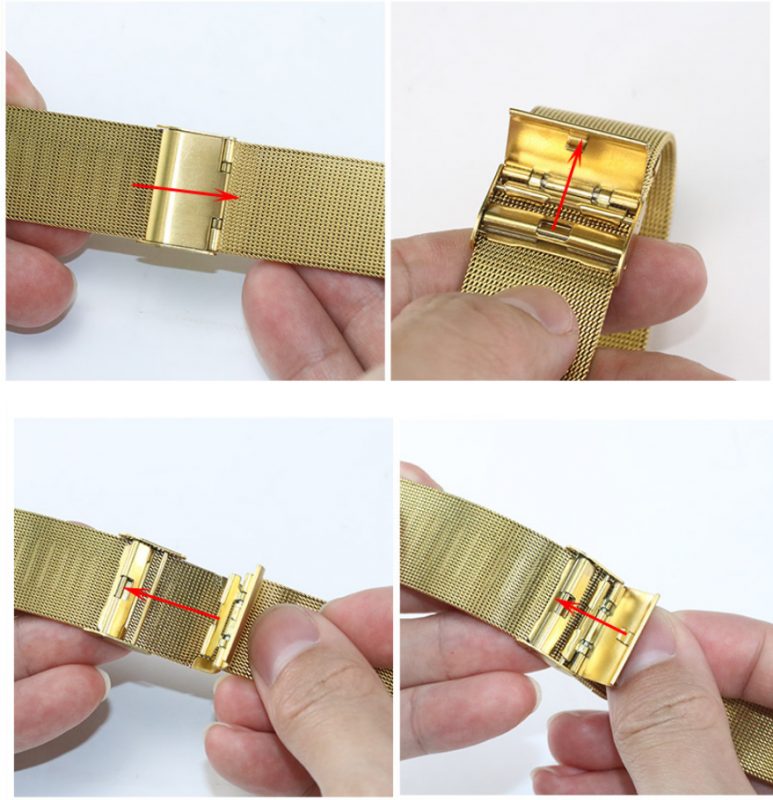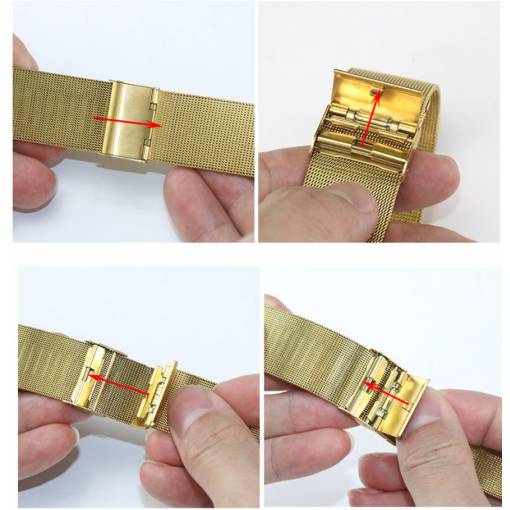 Elegantní řemínek je vyrobený z kvalitní nerezové oceli, řemínek je opatřen sponou pro pohodlné upínání, a jeho délka je snadno nastavitelná pomocí posunu spony.