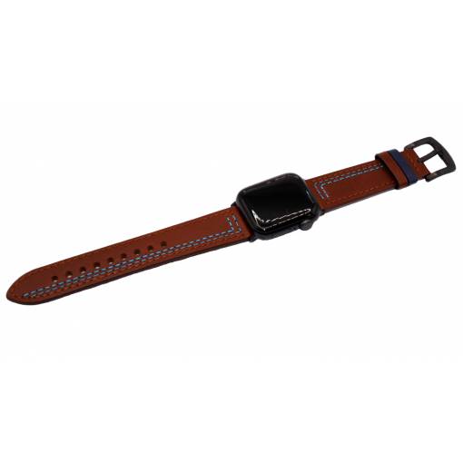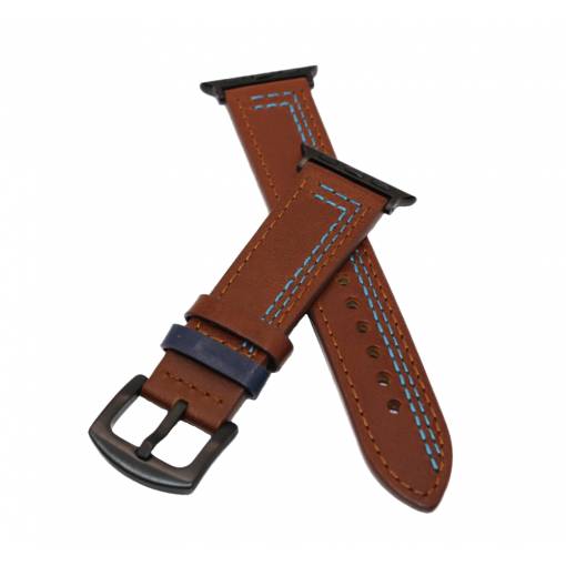 eses Kožený řemínek pro Apple Watch - Hnědý s modrým vzorem 42mm, 44mm, 45mm, 49mm