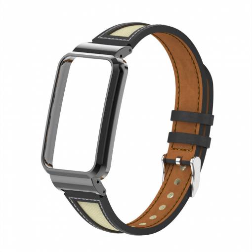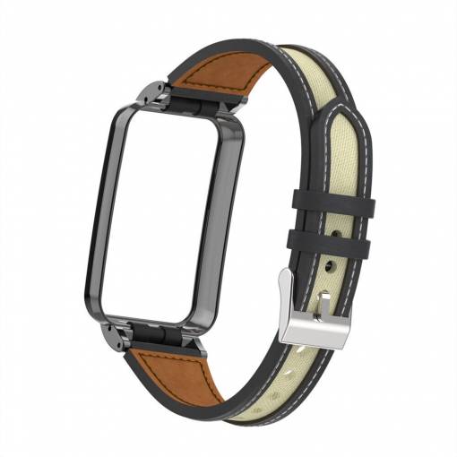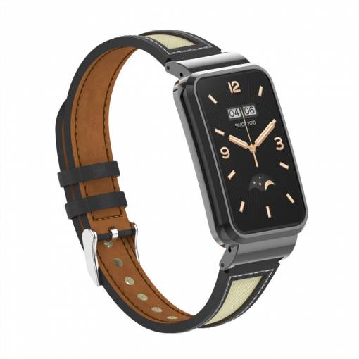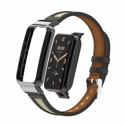 eses Kožený řemínek kombinovaný pro Xiaomi Mi Band 7 Pro - Černý