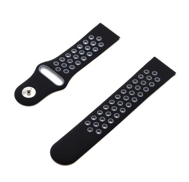 eses Silikonový dírkovaný řemínek - Černo šedý, 18 mm