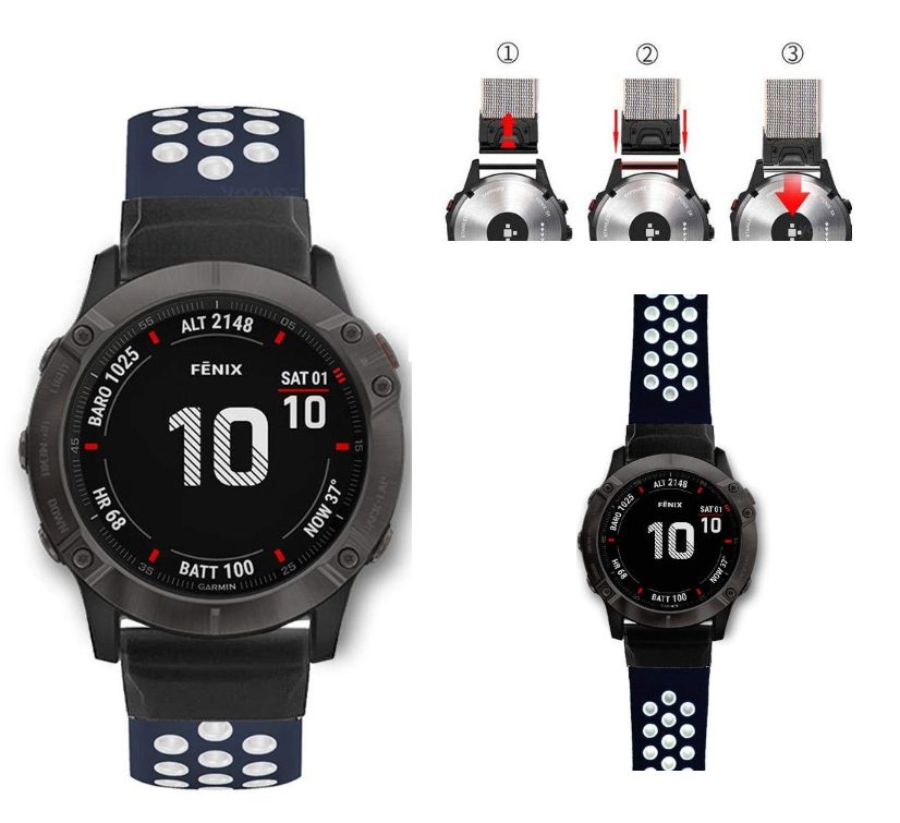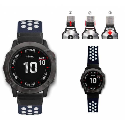 eses Silikonový dírkovaný řemínek pro Garmin - Modro bílý, QuickFit 26mm